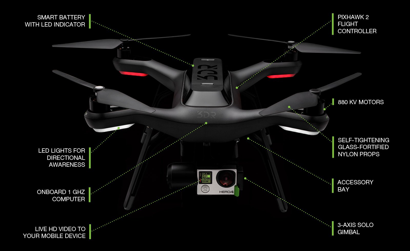 イワン・マクゴワン副会長は、「ソロに搭載された二つのコンピュータ知能で、自律飛行機能が格段に向上した」とし「おかげで、ユーザーは問題なく、様々な航空撮影を楽しむことができるだろう」と自信を示した。ソロは入門者でも簡単に操縦することができる。ボタンひとつで離着陸が可能で、緊急の状況時には瞬間的に空中で停止する「エアブレーキ」機能が実装されている。また、出発地点に戻ってくるセーフティネット機能があり、初心者でも簡単に操作することができるとした。