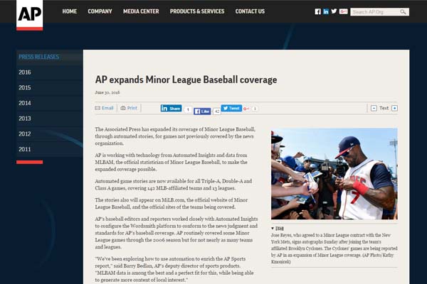 AP通信「野球マイナーリーグの報道にもロボットを導入します」
